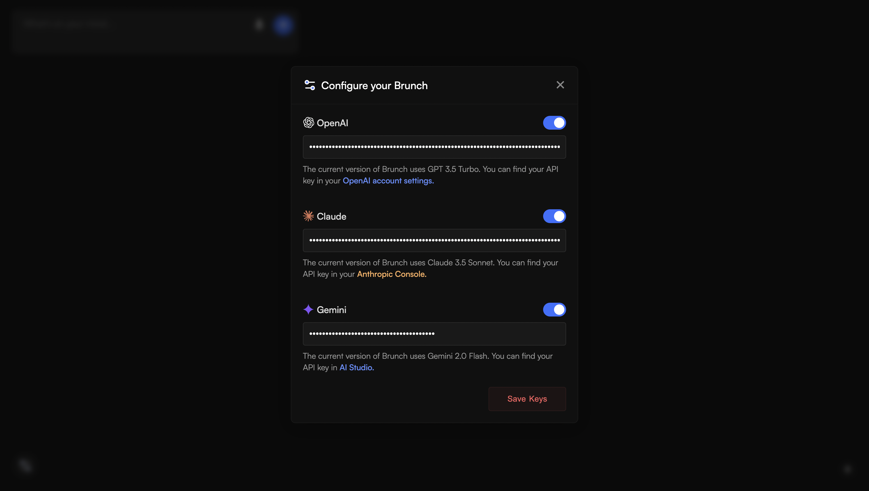 Brunch was entirely written in vanilla HTML, CSS, and Javascript. Significant chunks of the chain of thought traversal logic was courtesy Claude (and honestly, 3.7 Sonnet is the best model to give you comparatively cleaner, nicely modularized code).